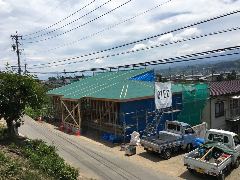 6月29日大安で建築吉日。夕方から雨に降られてしまいましたが、建て方(柱や梁、屋根を組み上げること)をしました。
