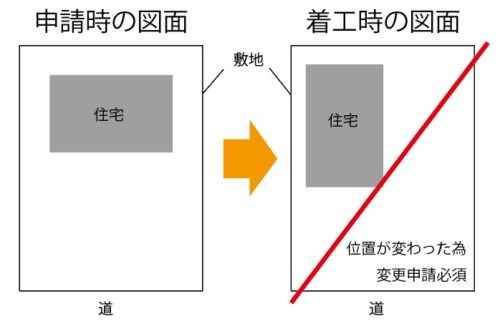変更申請中は工事が始まっていても許可が下りるまでストップする必要が出てきます。変更申請にも1~2カ月必要なので要注意。