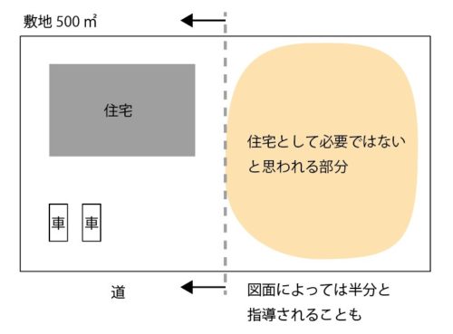 一般的には500㎡(151坪)くらいまでOKと言われていますが、最初にお伝えした通り、農地法は農地を守る法律です。宅地として必要のない部分があると面積を減らし、農地を少しでも多く残すように指導されることもあります。