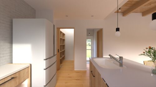 キッチンの真横に、使いやすい大容量パントリー。