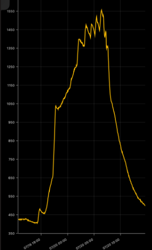 10分で1500ppmまで上昇しました。この後30分焚いたところ2500ppmを超えてしまいました。