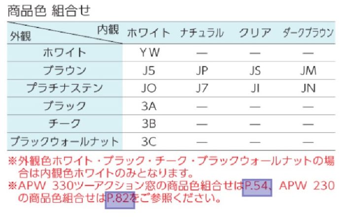 内外の色の組み合わせが可能なものと不可能なものがありますので気を付けてください。